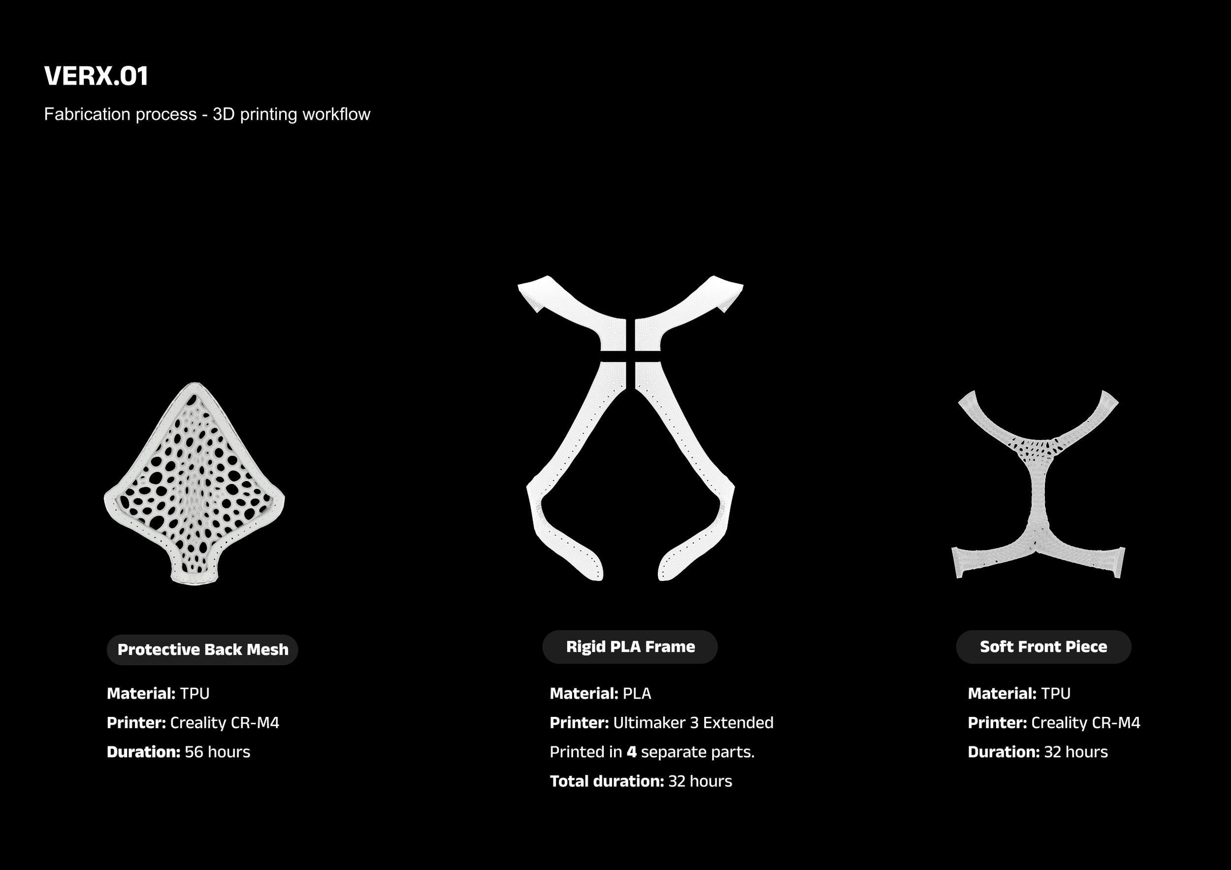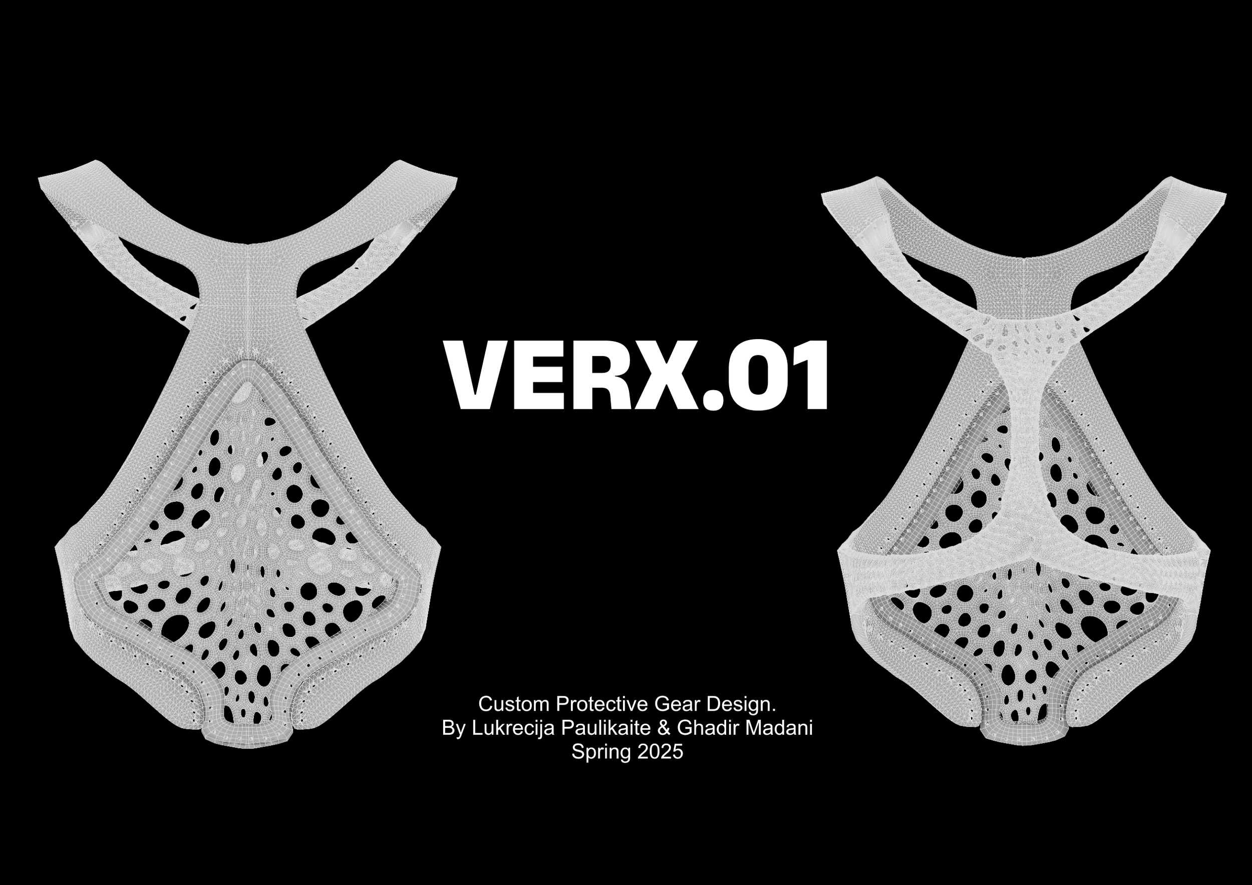 This project explores the design of a spine protection wearable for female athletes, using data-informed remeshing and multi-material 3D printing. The wearable combines a rigid PLA frame with a soft, impact-dispersing TPU mesh. The structure takes advantage of variable mesh density to optimize material performance: areas along the spine identified as high-risk for impact are assigned a denser mesh of TPU, allowing for greater energy absorption and localized deformation. This principle follows established biomechanics, where higher structural density in materials corresponds to improved impact resistance and stress distribution.